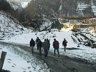 蒲原沢現地調査を行う、文部省科学研究費突発災害研究班メンバー