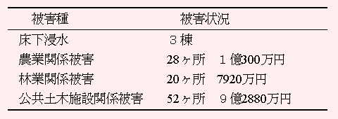 表−1.1996年6月24〜26日の豪雨による被害 長野県全体 6月27日付信濃毎日新聞記事より